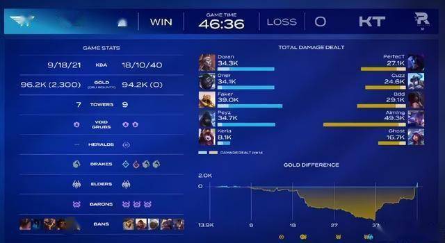 KT前期打出15:1的人头比,经济领先高达1.4万,且手握水龙魂+远古巨龙Buff,三路高地全破,胜率一度超90%,此前LCK最大翻盘经济差为9,000-10,000金币(如2025年GEN翻盘NS时NS领先约8,000),本次近1.4万差额刷新上限。历史上从未有队伍在同时持有水龙魂+远古龙魂+大龙魂时被翻盘,KT成为首例。